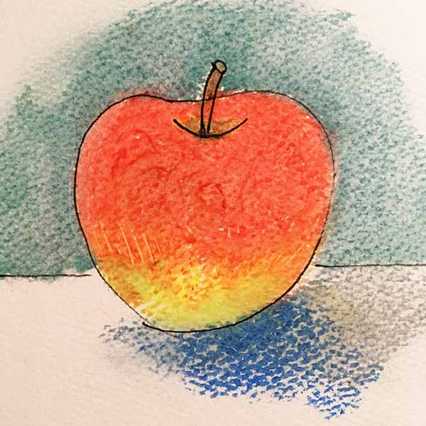 クレヨンと透明水彩の中間のような、ちょっと不思議な画材ですね。